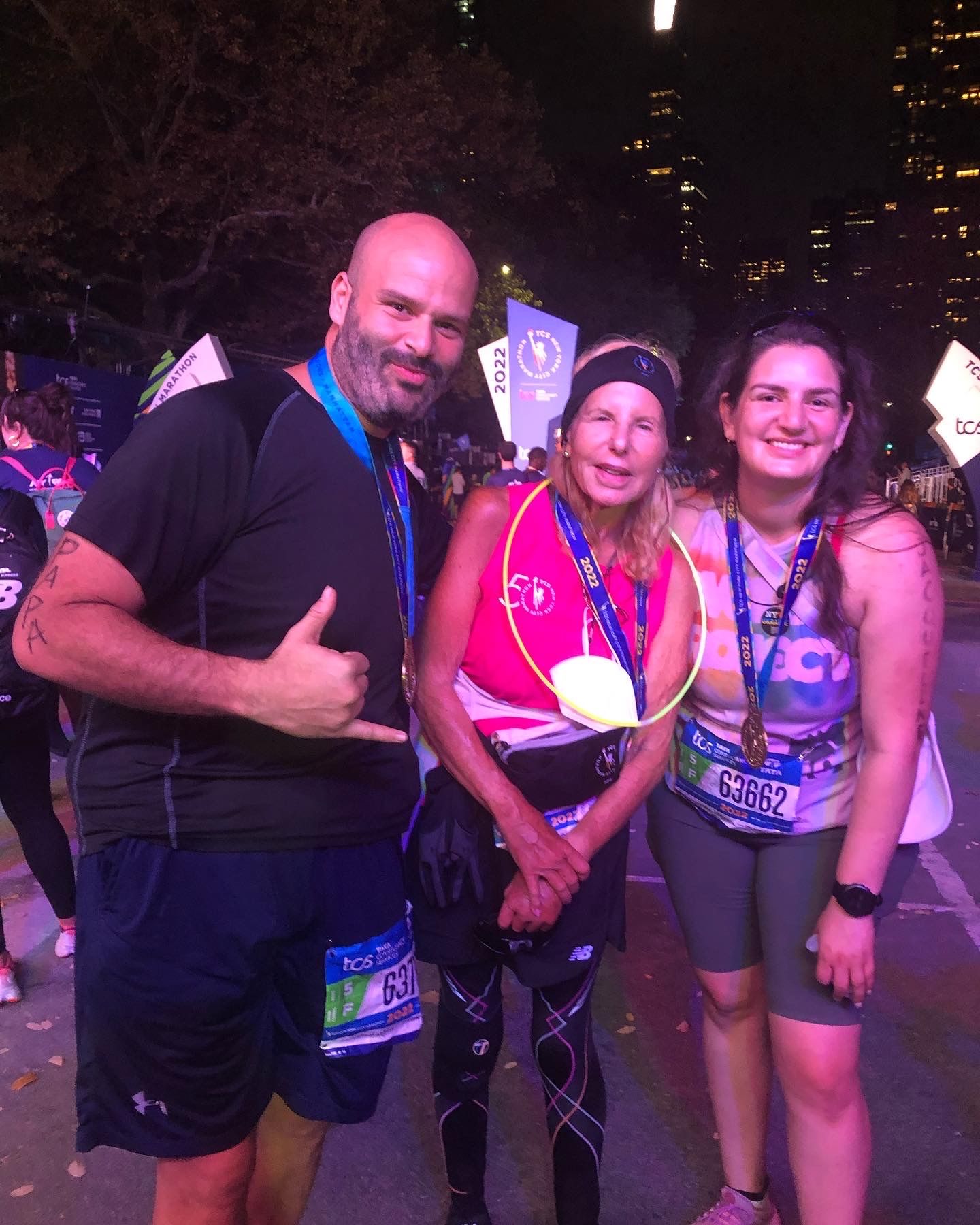 I think I was on track to complete the marathon between 7:30 - 8 hours but then Honey fell just around the 20 mile mark or so. I helped her up but she was in tremendous pain and was not able to stay up on her own two feet. Honey is a "streaker" - a title earned when you have completed 15 NYC marathons. This was her 26th nyc marathon and she had been moving since 9 am (streakers go right after the pros go). Honey was in no shape to finish the marathon so we walked right alongside her and got her right to the finish line. After that I got her into a cab.