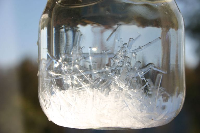 Crystals grown from Borax (left) and Magnesium Sulfate (right)